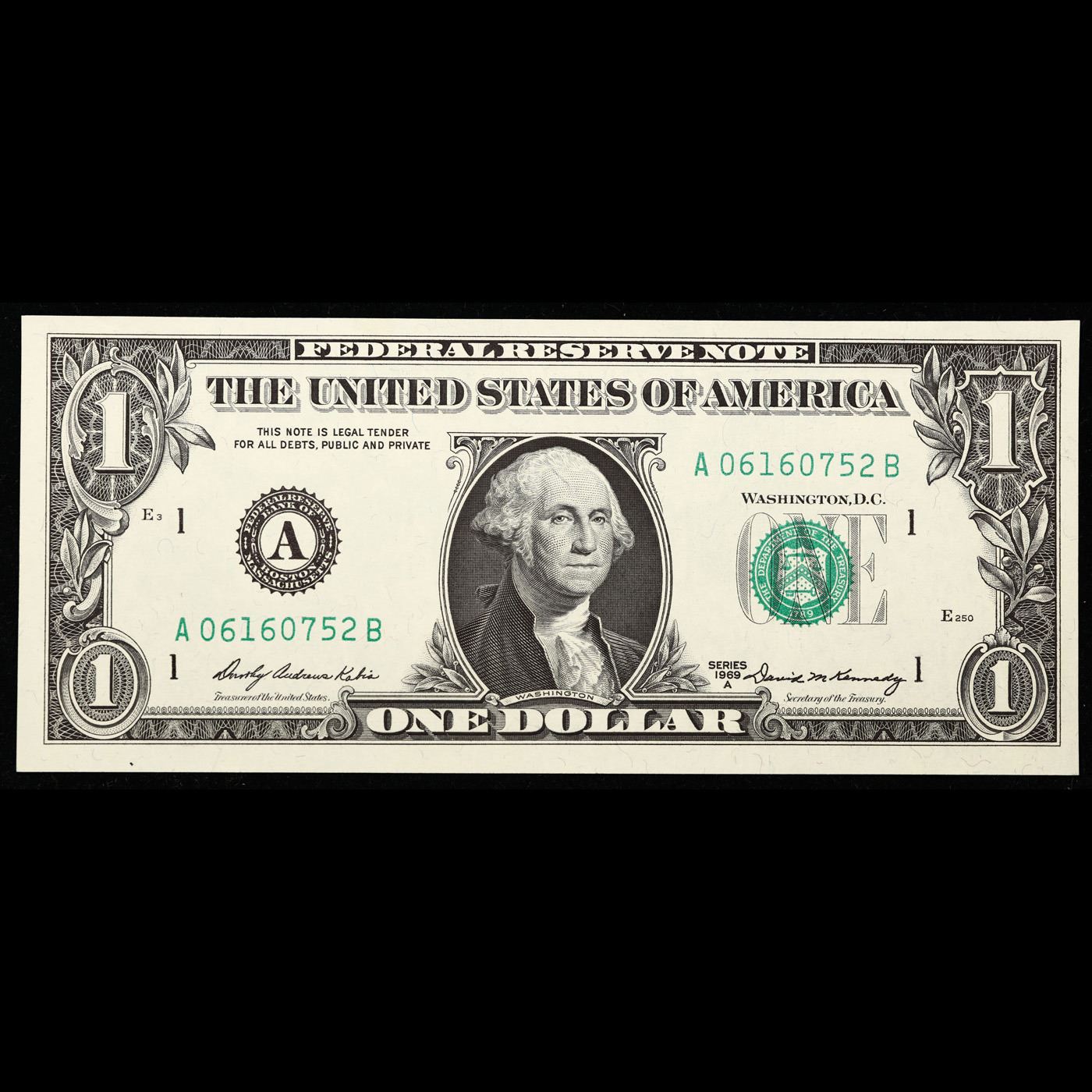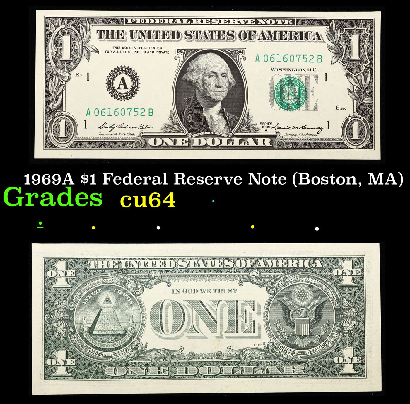 1969A $1 Federal Reserve Note (Boston, MA) Grades Choice CU