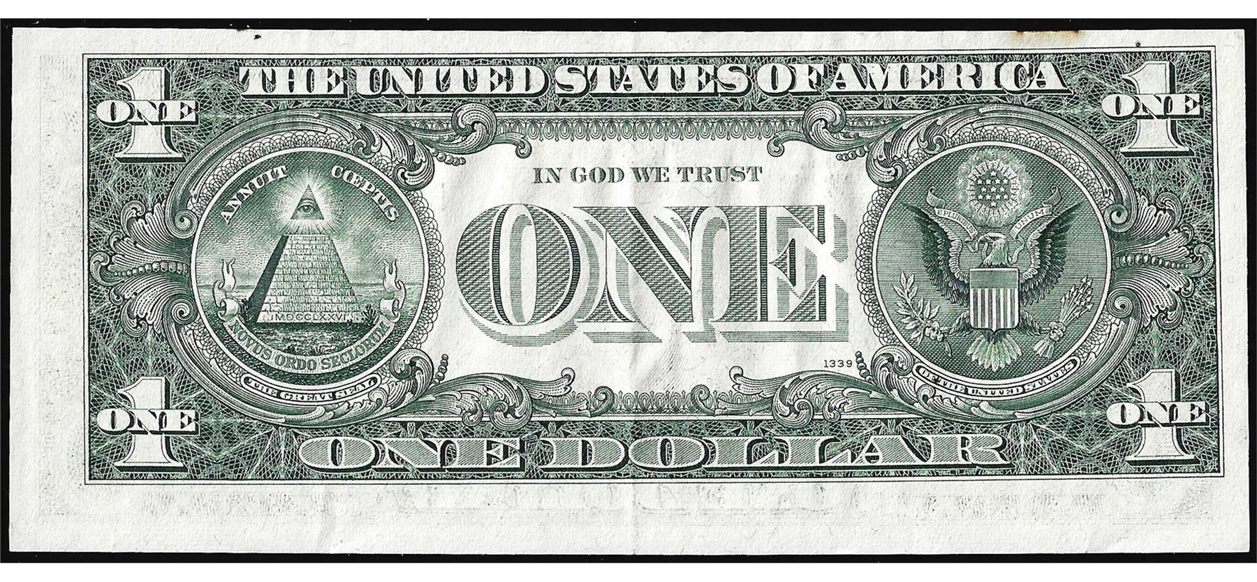 One 1969A $1 Federal Reserve Note Misaligned Printing Error with BEP Mark.