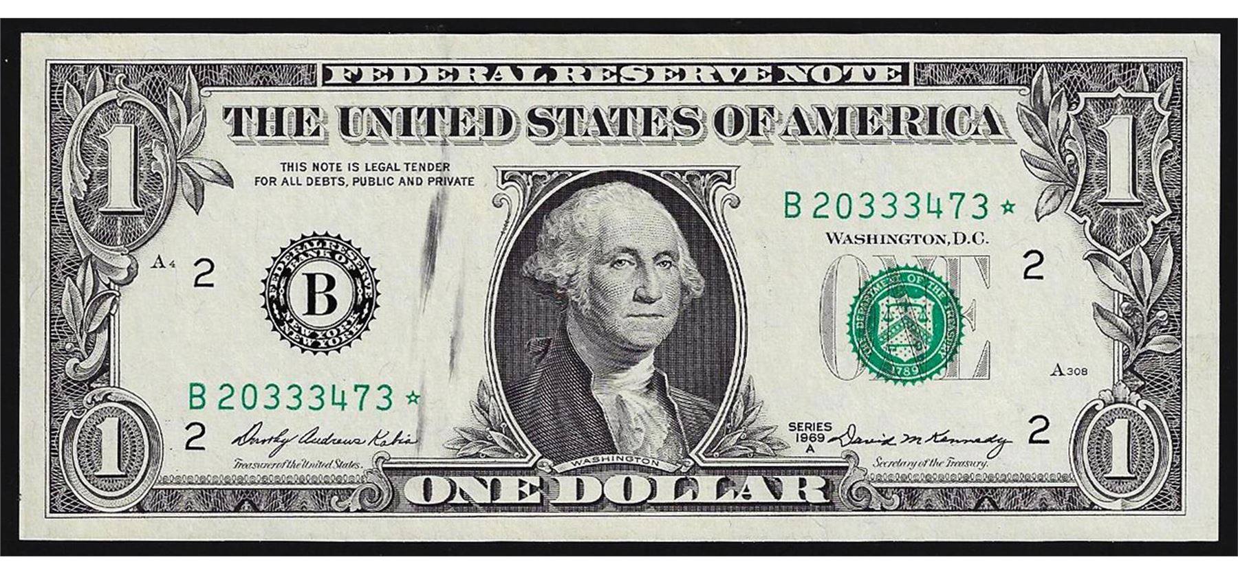 One 1969A $1 Federal Reserve STAR Note Ink Smear ERROR.