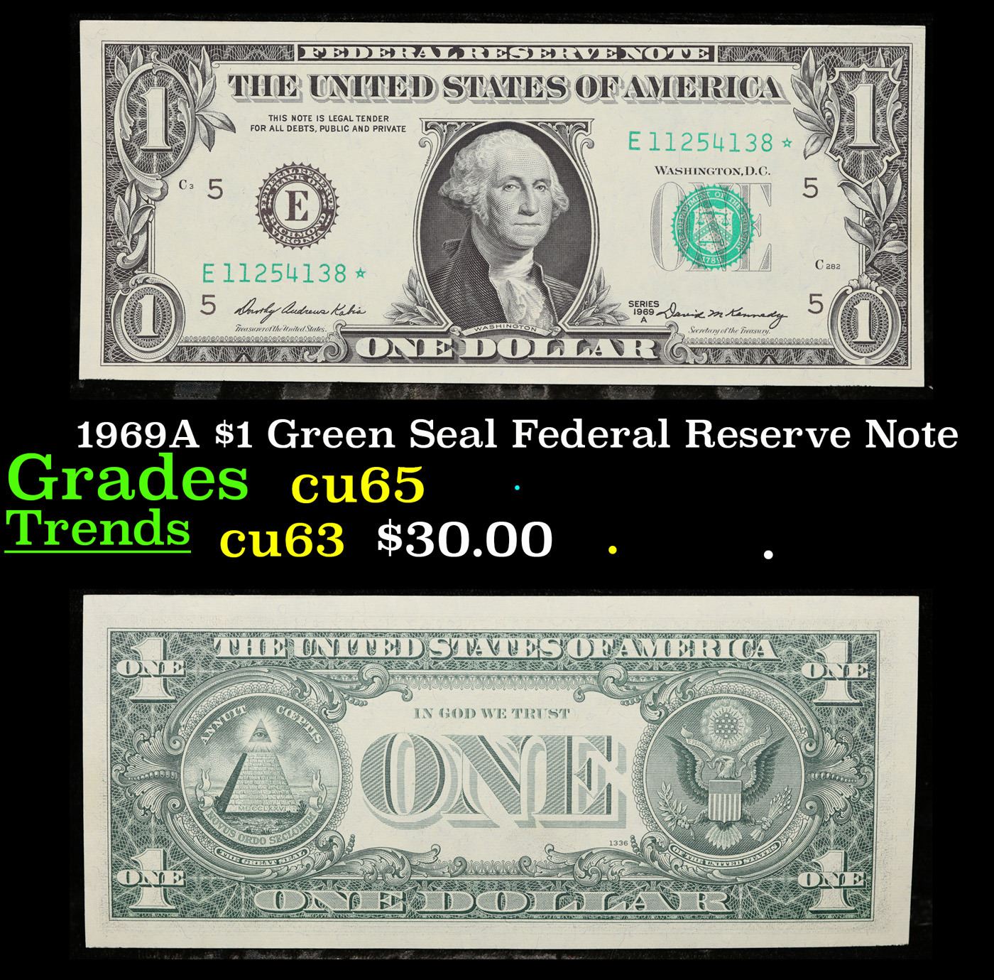 1969A $1 Green Seal Federal Reserve Note Grades Gem CU.
