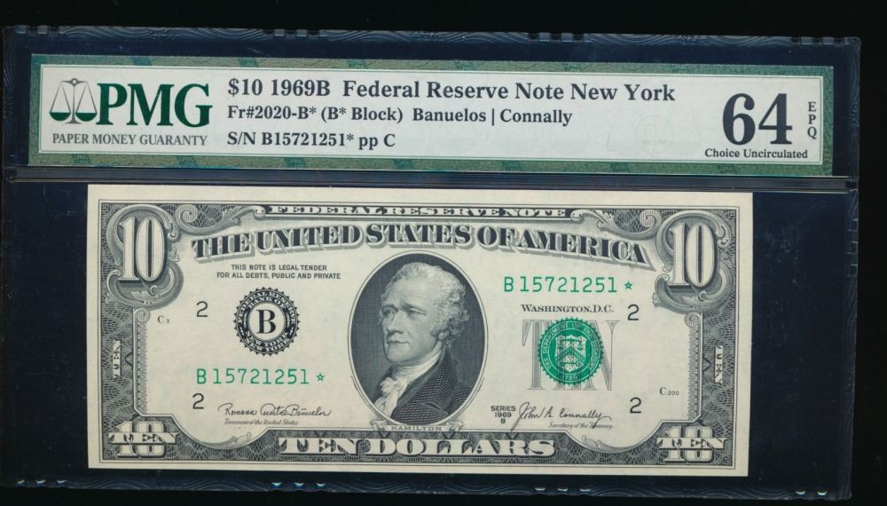 One 1969B $10 New York Federal Reserve STAR Note PMG 64EPQ.