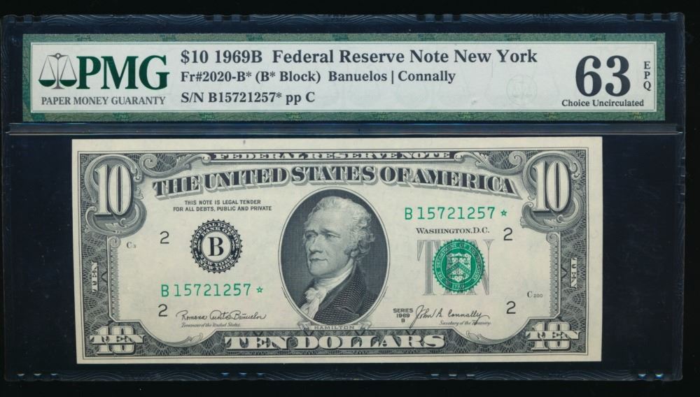 One 1969B $10 STAR New York FRN PMG 63EPQ.