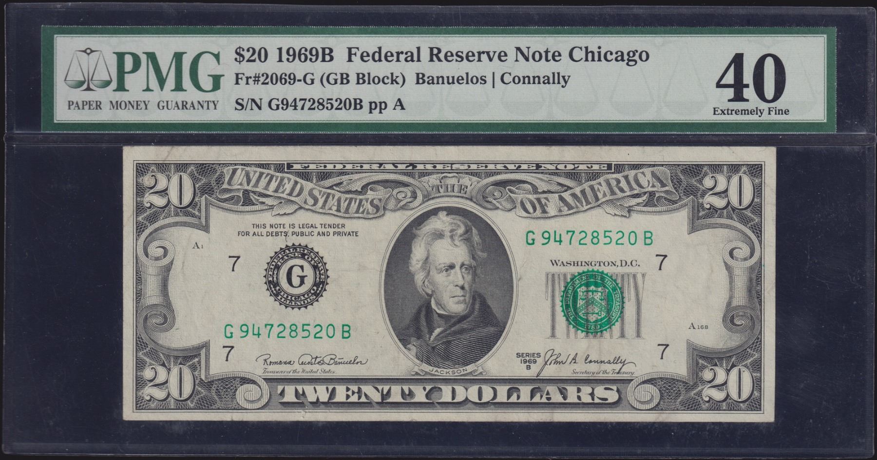 One 1969B $20 Chicago FRN PMG 40.