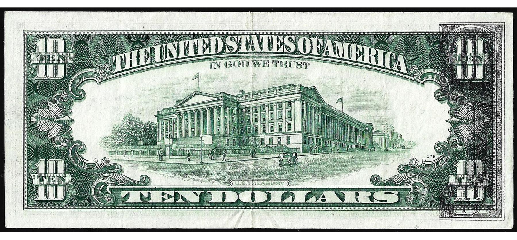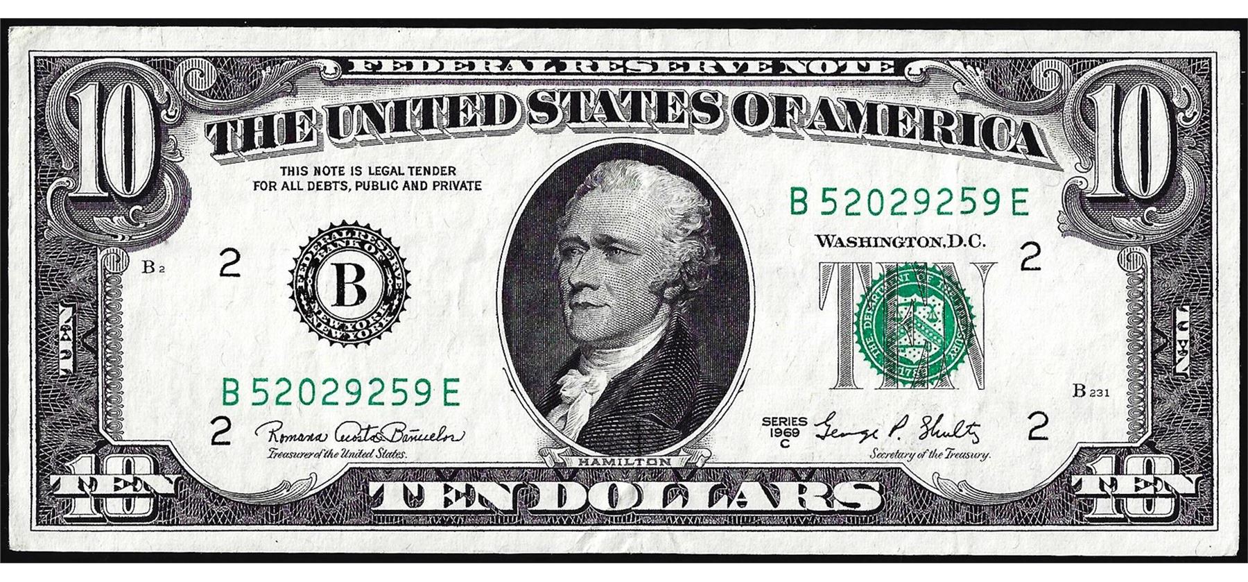 One 1969C $10 Federal Reserve Note Partial Offset Error.