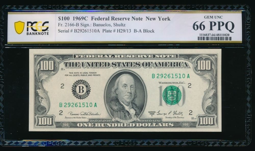 One 1969C $100 Chicago FRN PCGS 66PPQ.