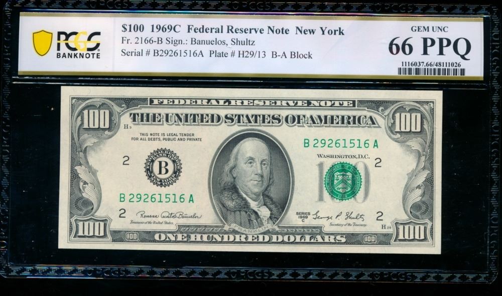 One 1969C $100 New York FRN PCGS 66PPQ.