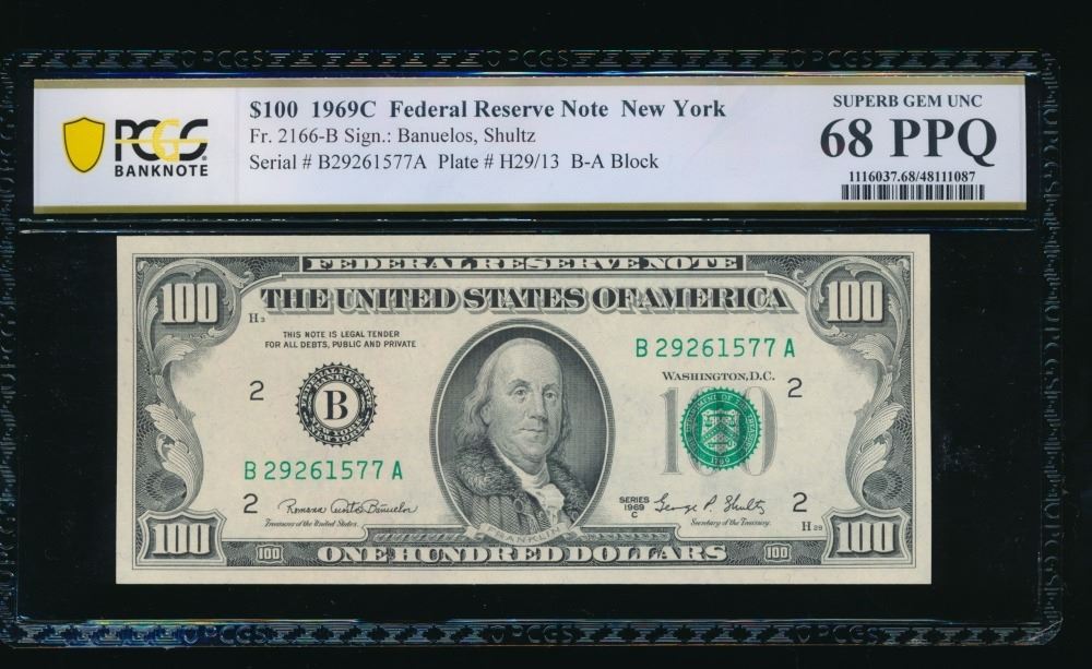 One 1969C $100 New York FRN PCGS 68PPQ.
