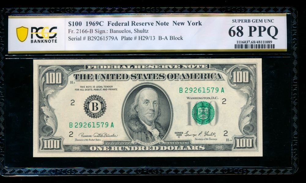One 1969C $100 New York FRN PCGS 68PPQ.