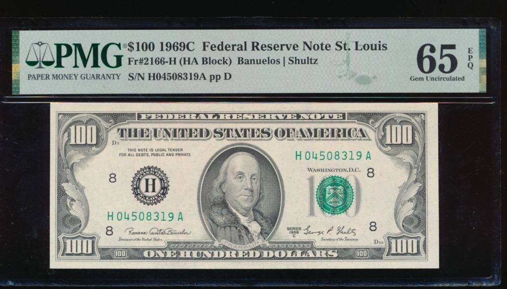 One 1969C $100 St Louis FRN PMG 65EPQ.