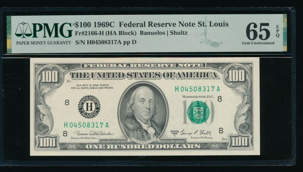 One 1969C $100 St Louis FRN PMG 65EPQ.