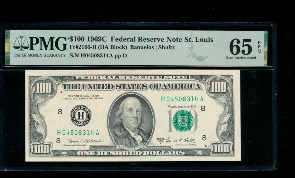 One 1969C $100 St Louis FRN PMG 65EPQ.