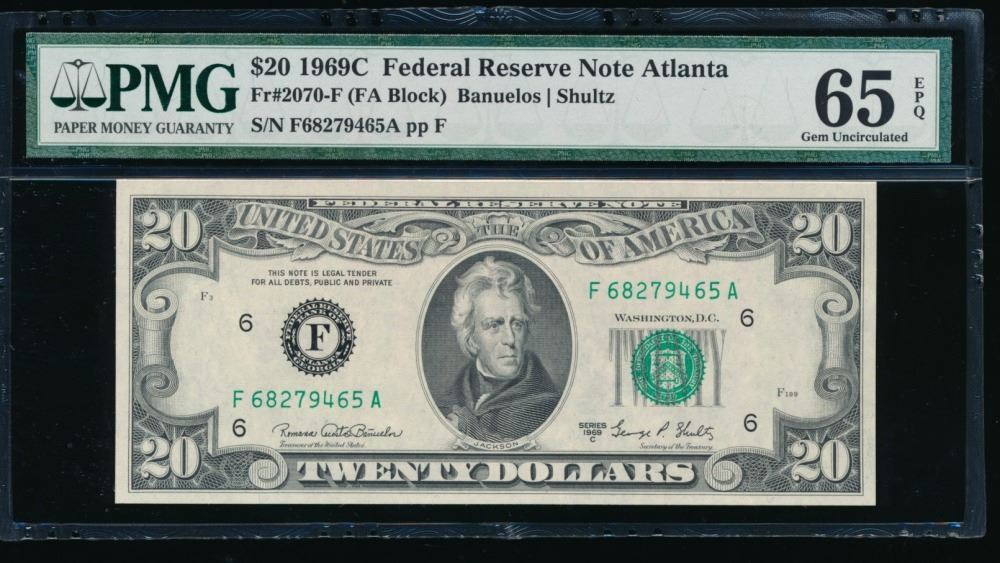 One 1969C $20 Atlanta FRN PMG 65EPQ.