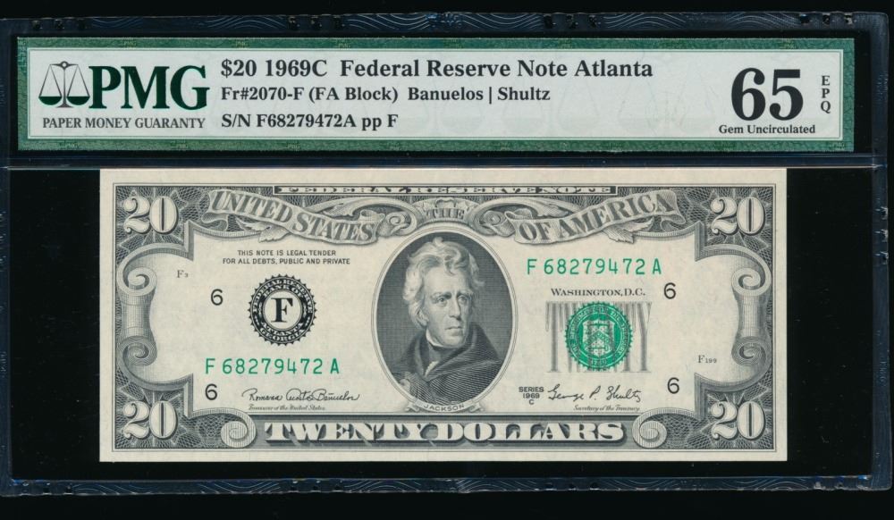 One 1969C $20 Atlanta FRN PMG 65EPQ.