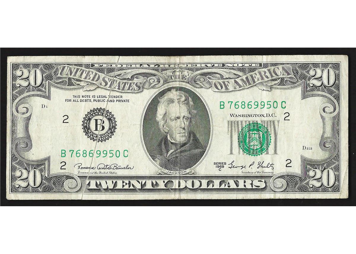 One 1969C $20 Federal Reserve Note ERROR Gutterfold.