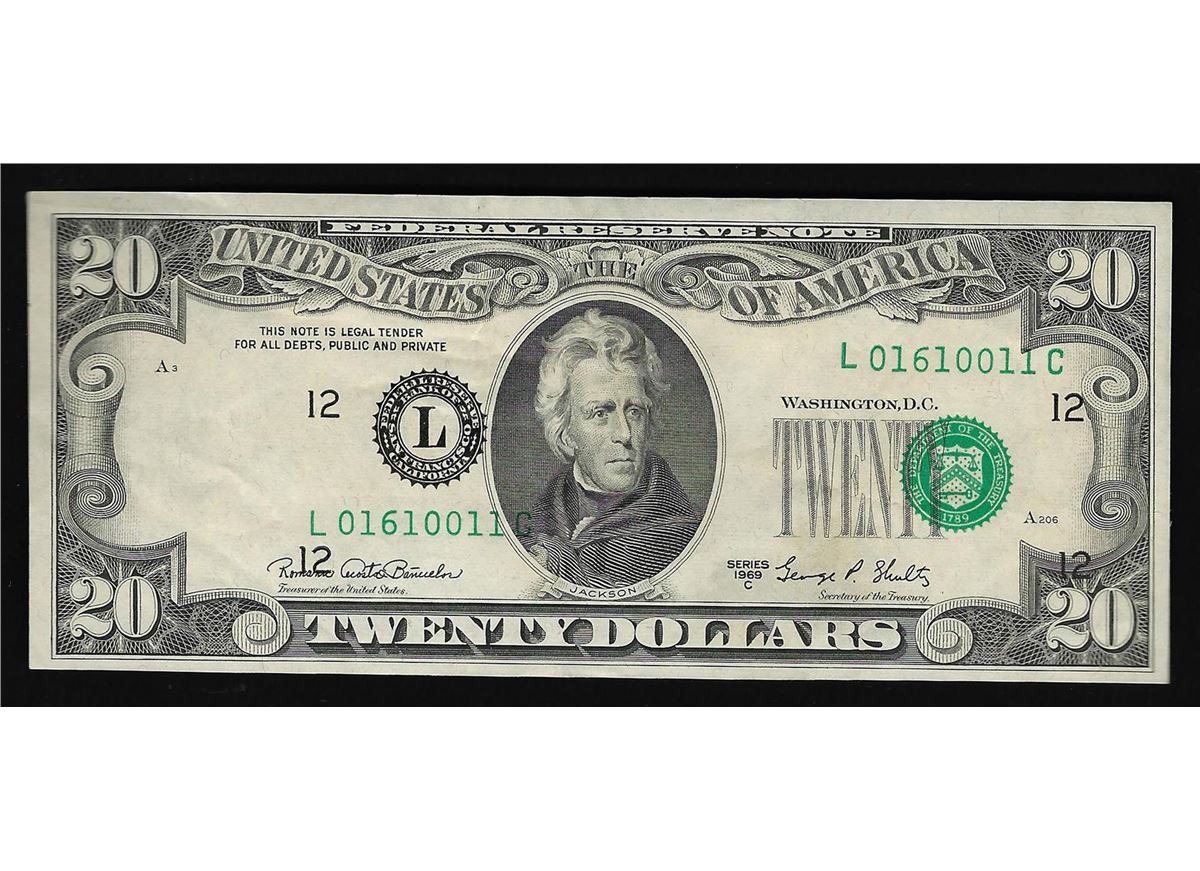 One 1969C $20 Federal Reserve Note Misalignment ERROR.