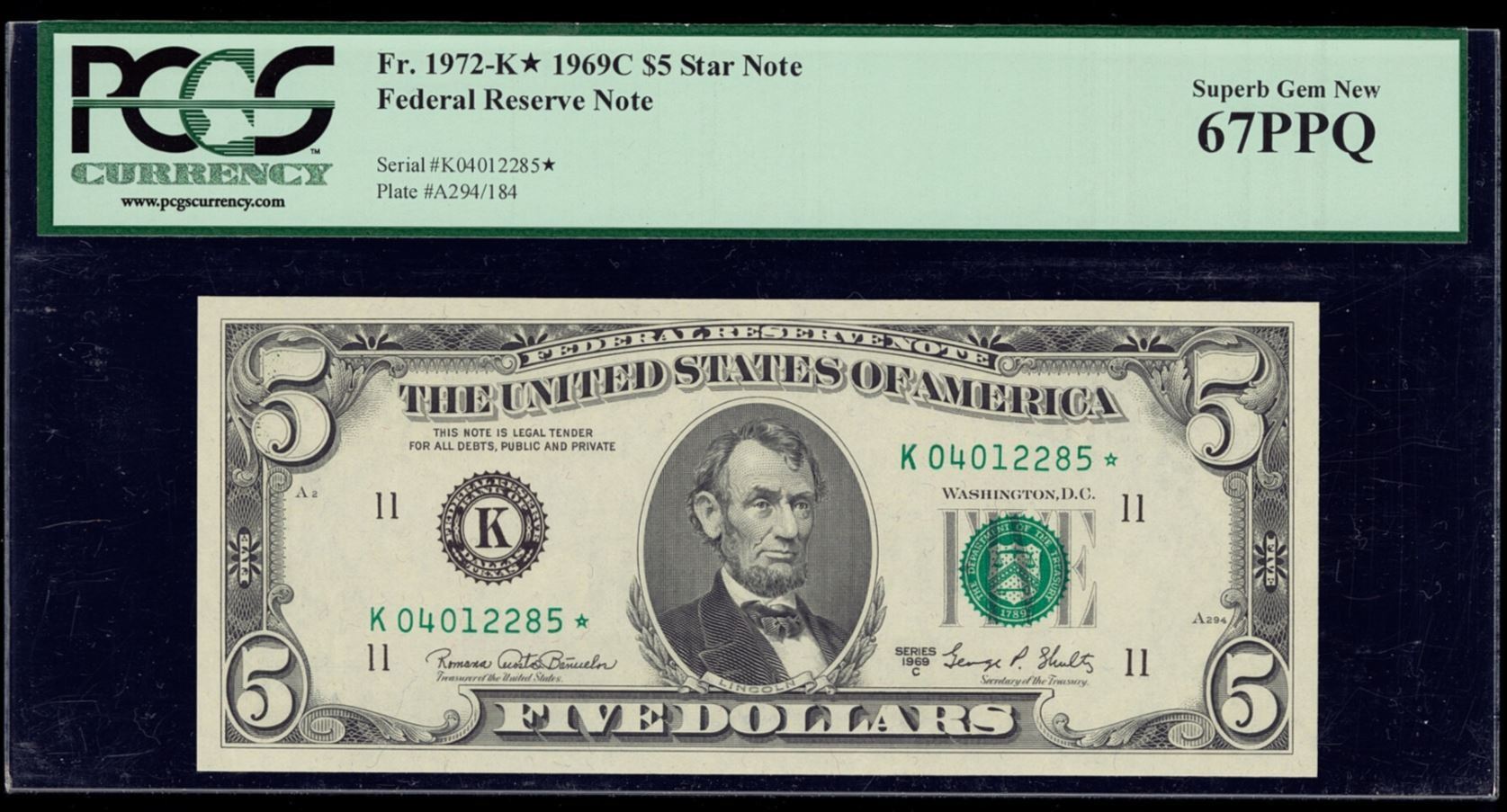 One 1969C $5 STAR Dallas FRN PCGS 67PPQ.