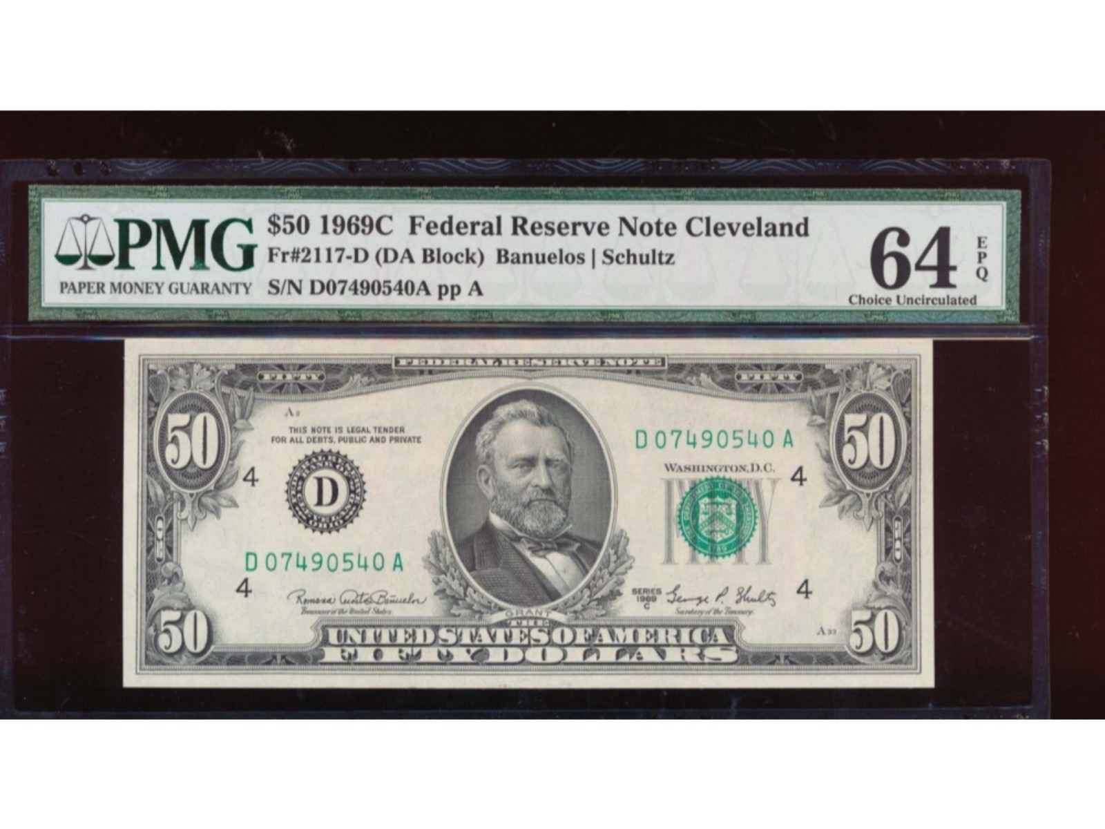 One 1969C $50 Cleveland Federal Reserve Note PMG 64EPQ.