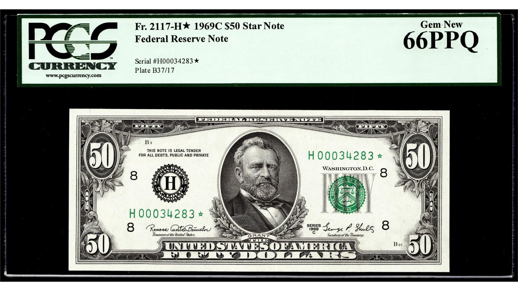 1969C $50 Federal Reserve STAR Note St. Louis Fr.2117-H* PCGS Gem New 66PPQ