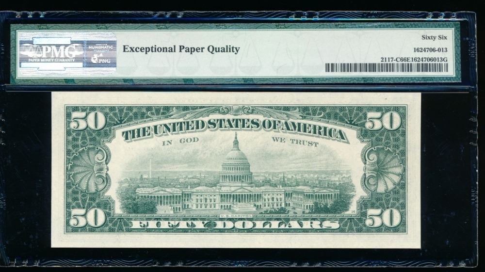 One 1969C $50 Philadelphia Federal Reserve Note PMG 66EPQ.