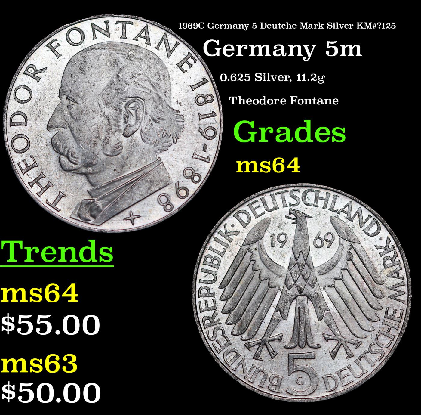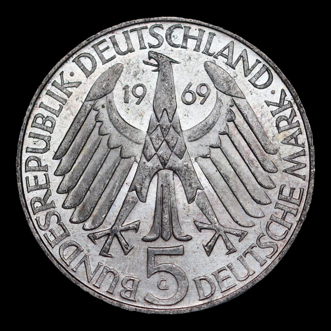 1969C Germany 5 Deutche Mark Silver KM#?125 Grades Choice Unc.