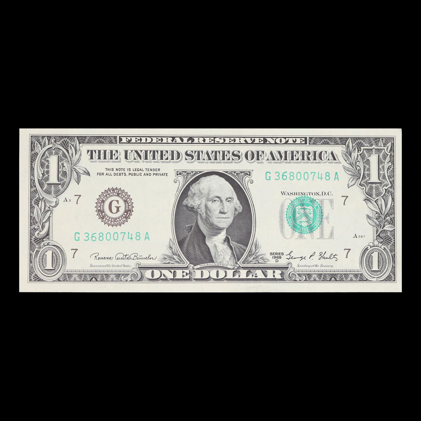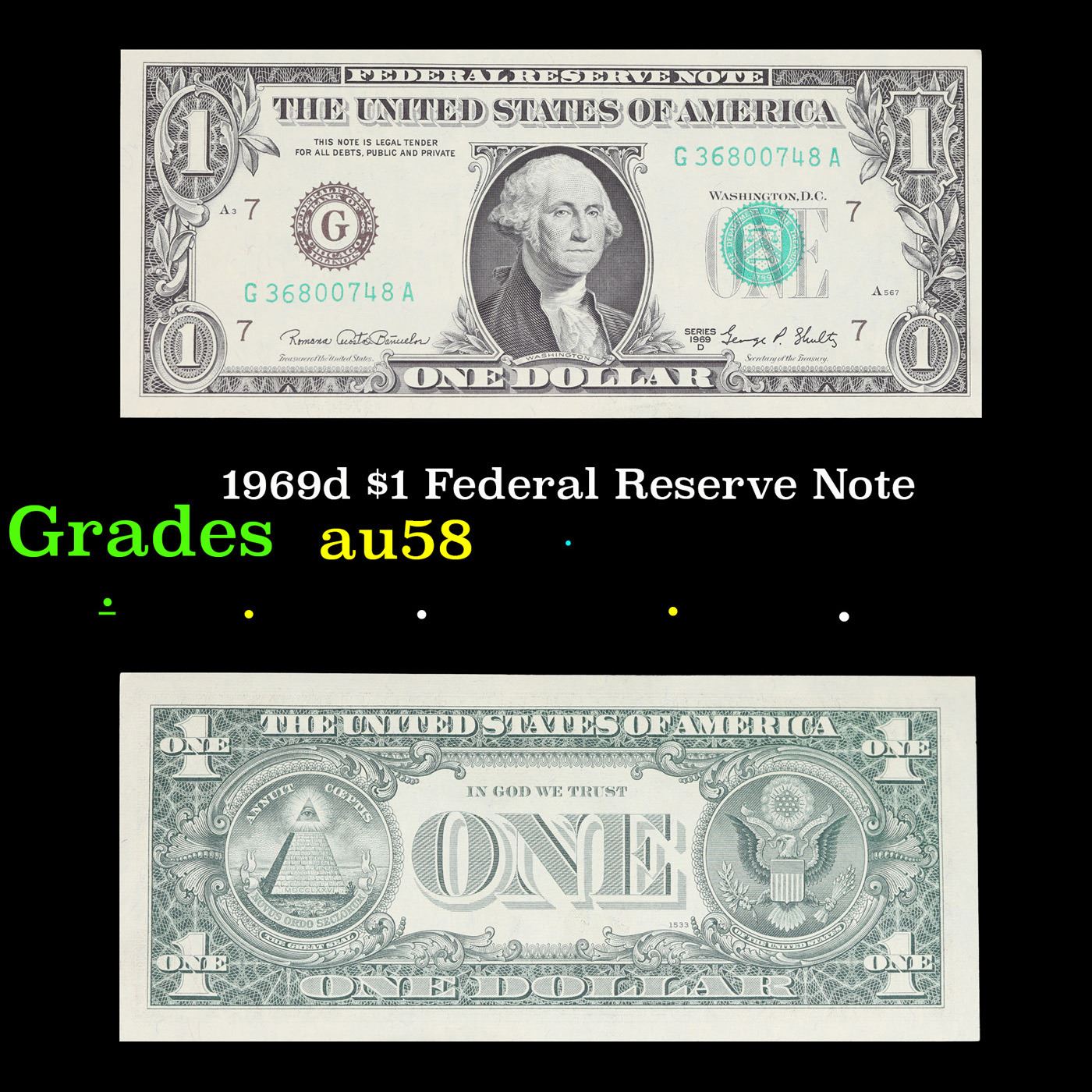 1969d $1 Federal Reserve Note Grades Choice AU/BU Slider.