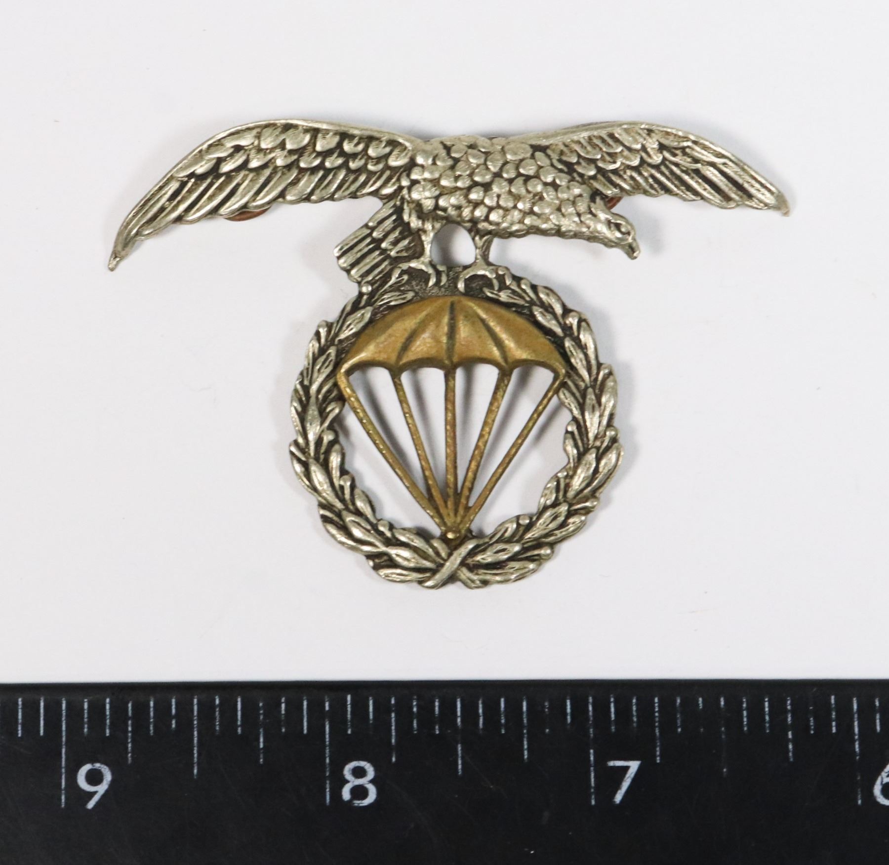 WORN REVERSE PARATROOPER INSIGNIA 1900'S 20TH CENTURY COLD WAR ERA PARATROOPER PARA AIRBORNE UNIFORM BADGE INSIGNIA CAP BADGE BERET BADGE