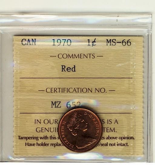 1970 1¢ ICCS MS66 Full Red, A superb GEM example.