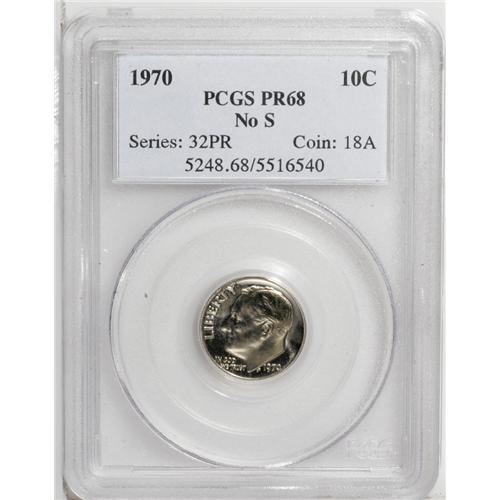 1970 10C Error No S PR68 PCGS. It is estimated that on