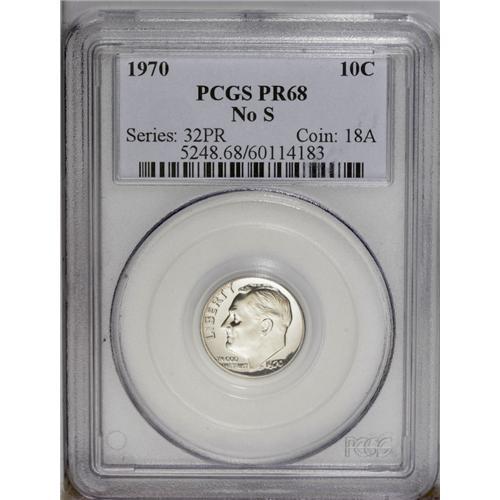 1970 10C No S PR68 PCGS. This is a splendid and Superb 1970[10C] No S PR68 PCGS.