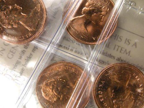 Canada Cent 1970, 1977, 1978 and 1979, all ICCS MS-65 Red, near full red, the 1977 Numismatic BU
