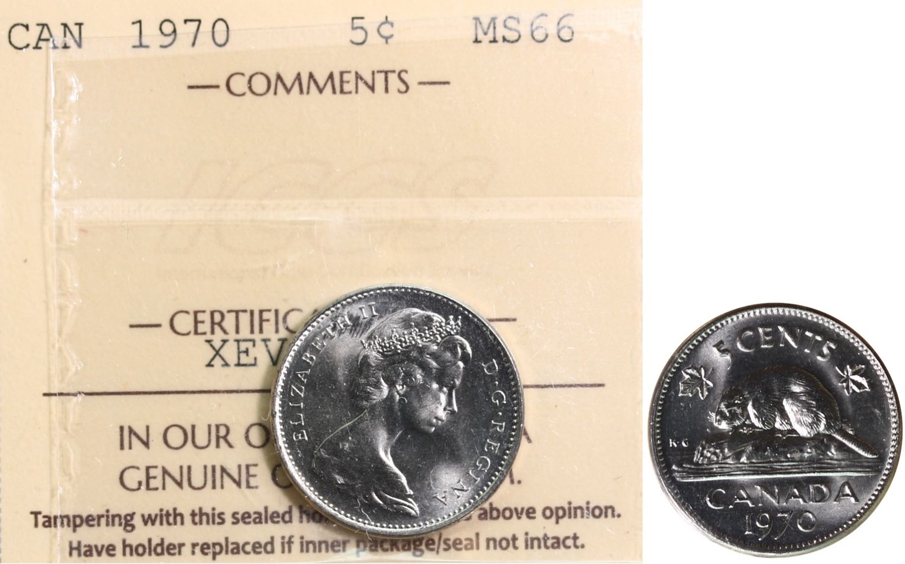 1970 5¢ ICCS Superb Gem Mint State-66. A similar example brought in $229 at our 2025 Spring sale.