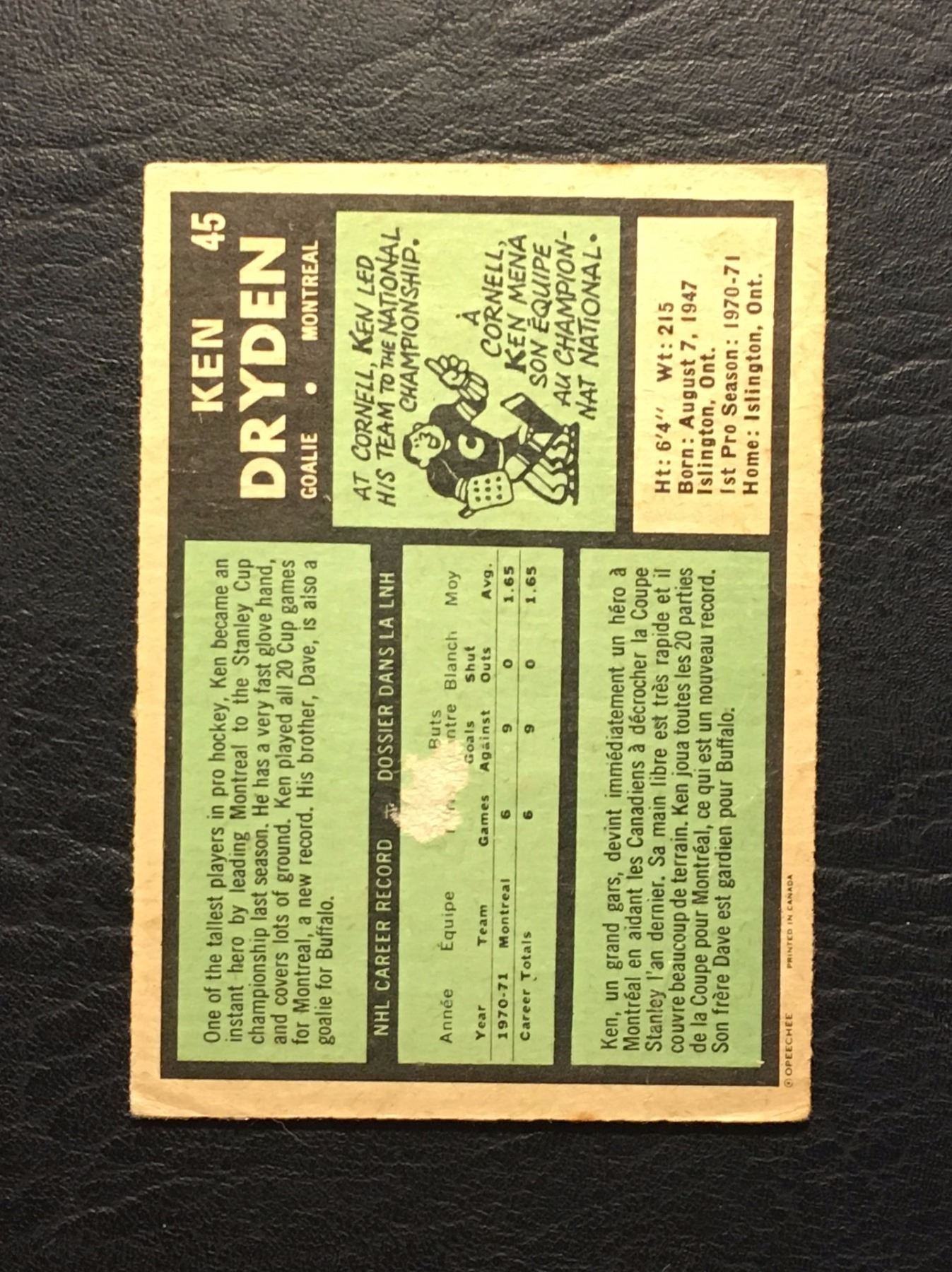 KEN DRYDEN ROOKIE CARD