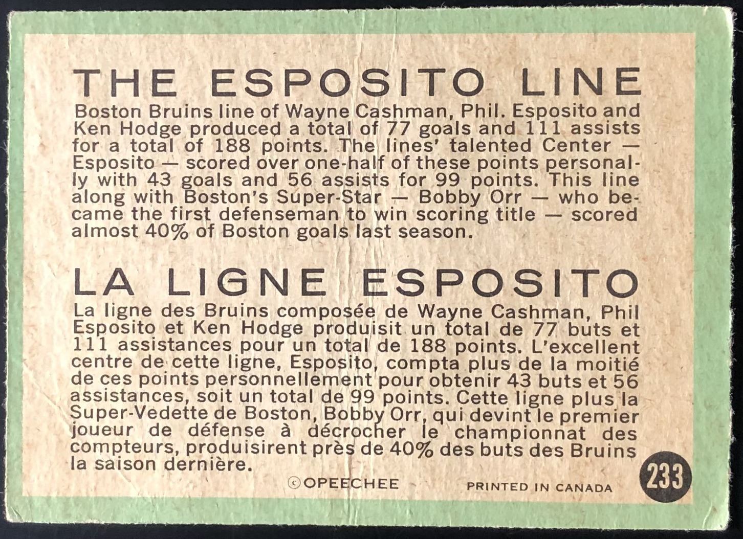 Card #233 OPC, vintage, NHL, hockey, hall of fame