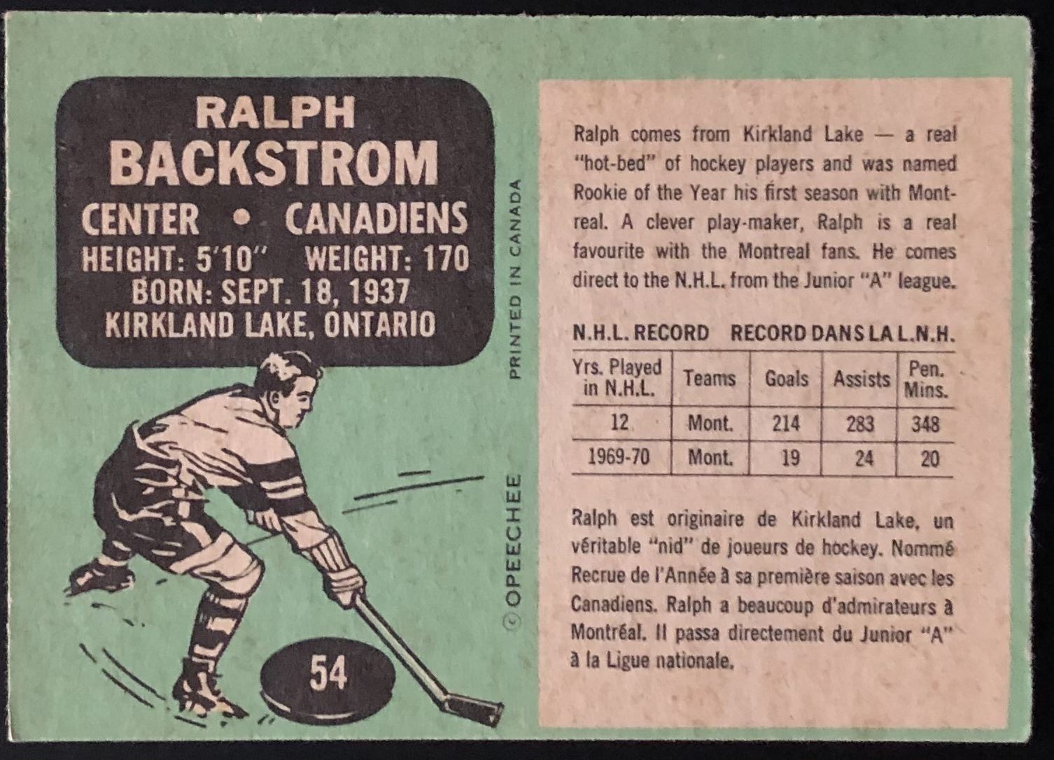 Card #54 OPC, NHL, hockey, vintage