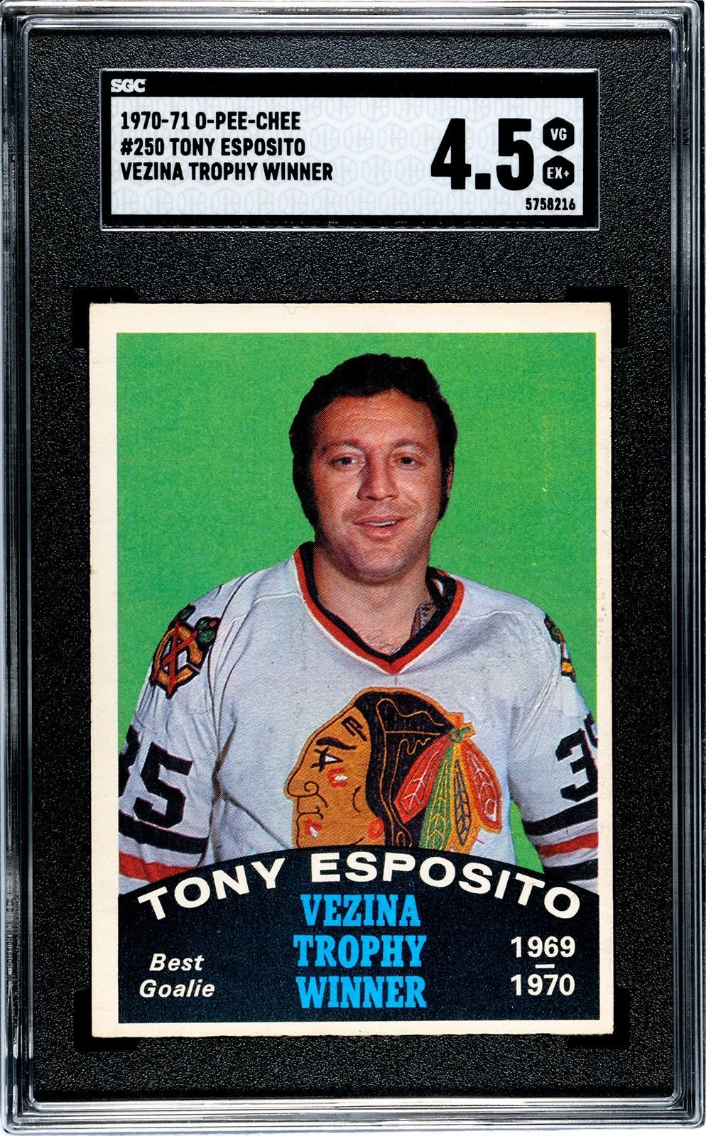 HOFer Espo was Rookie of the Year, won three Vezina Trophies, was a three-time first-team all-star and runner-up for league MVP. Graded a clean 4.5 VG-EX+ by SGC.