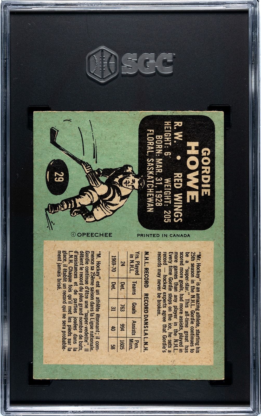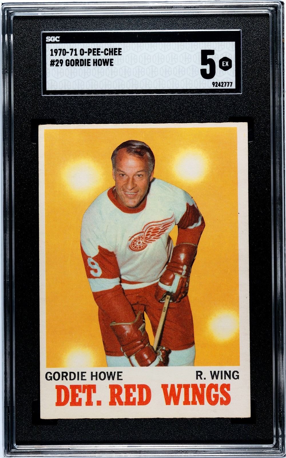 Nice mid-grade example of the great HOFer, Gordie Howe, who was still going strong at the age of 42 with 52 points in 63 games. Graded 5 EX by SGC.