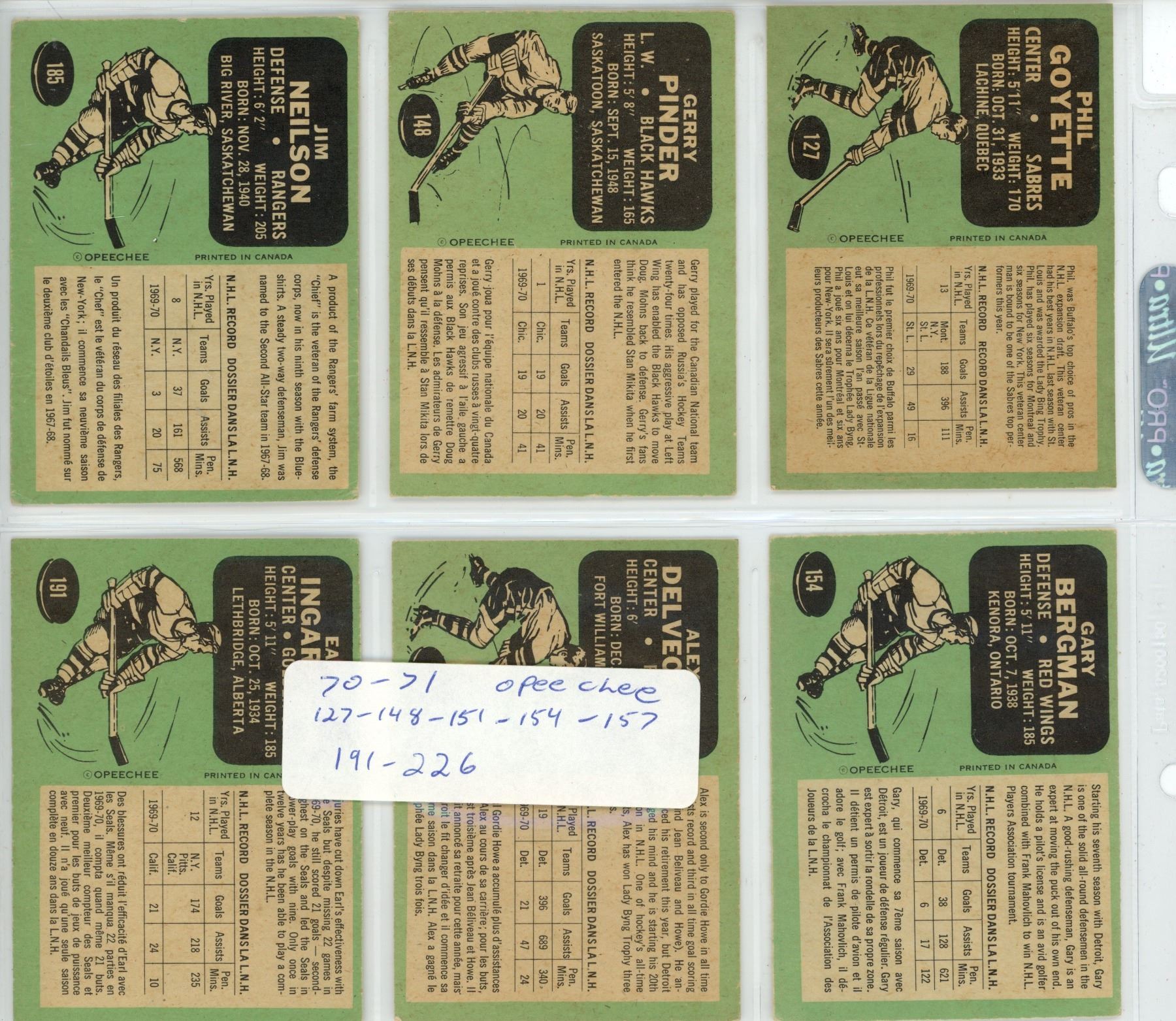 1970-71 OPC 6 card lot