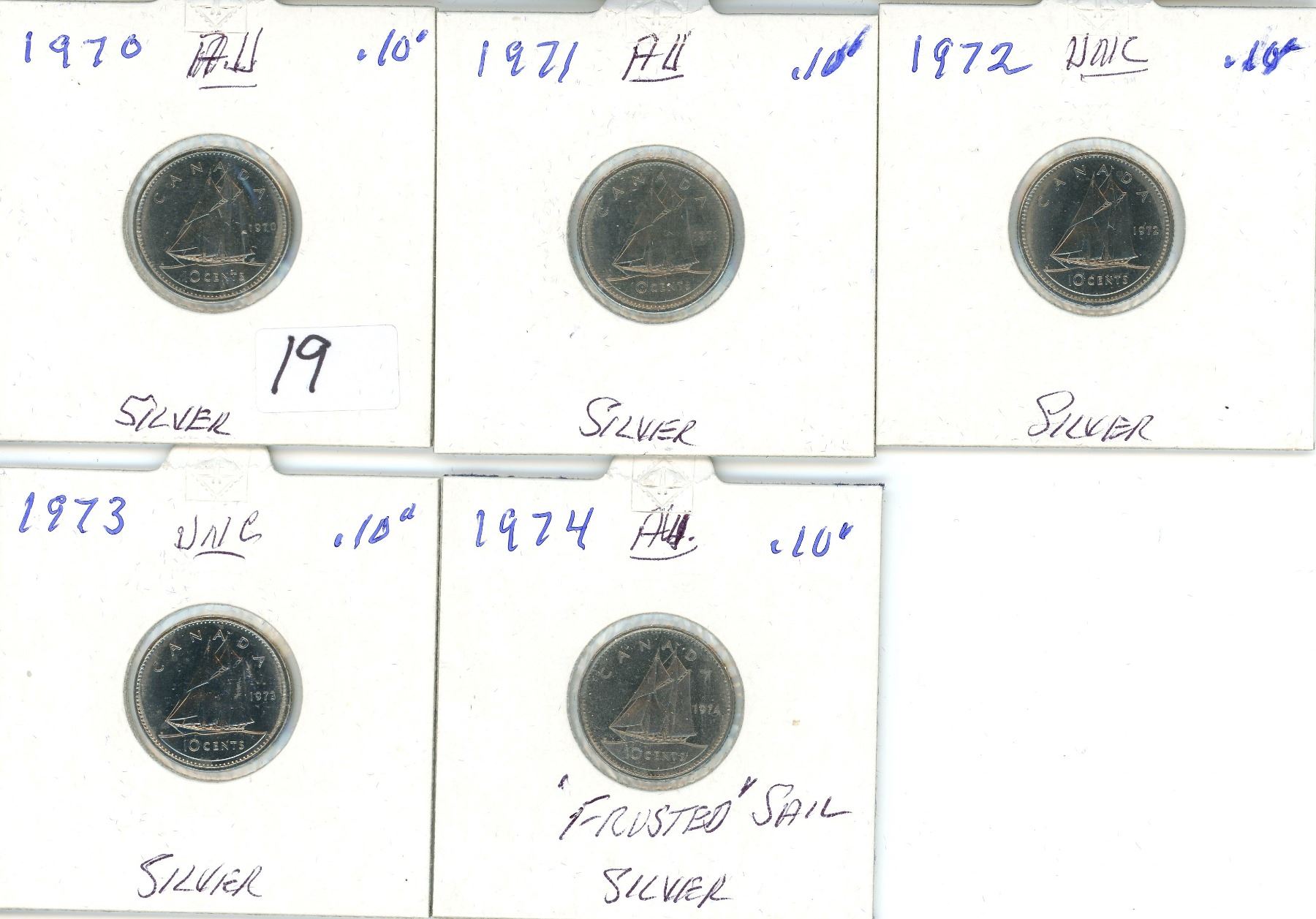 1970-74 (5) 10¢ (Most UNC) Silver Coins