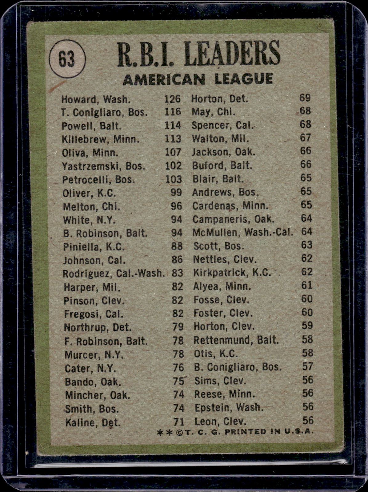 1970 AL RBI Leaders 1971 Topps #63