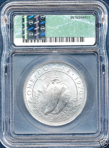 1970 BAHAMAS SILVER ONE DOLLAR COIN-ICG MS69