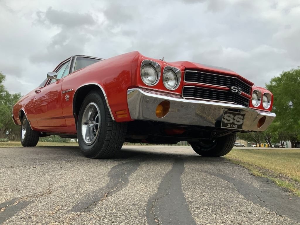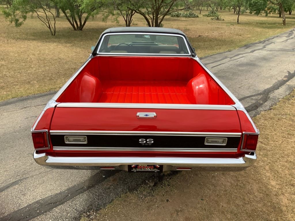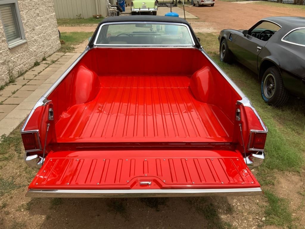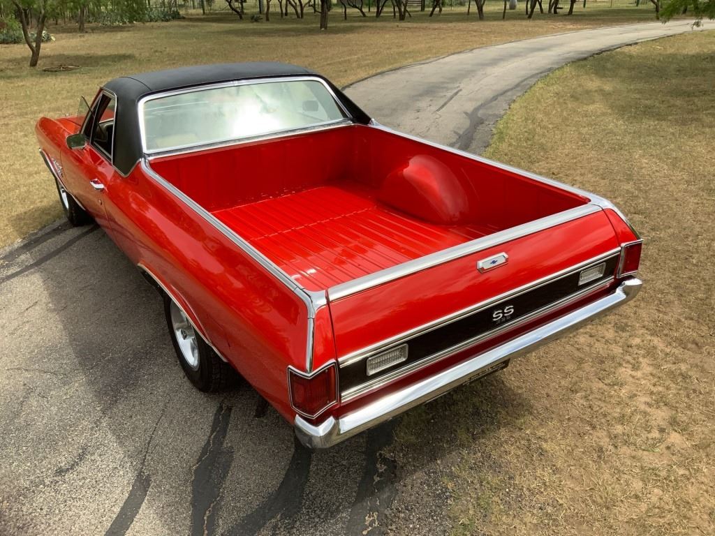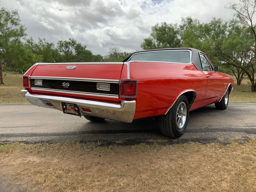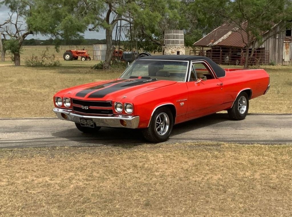1970 El Camino SS, 402 Big Block, PS, PB, A/C, Automatic. Chevrolet's El Camino has enjoyed a loyal following of enthusiasts since its introduction in 1959. The smoother ride of a suspension based on a passenger car combined with a useful cargo bed appealed to an entirely new group of potential customers. Also, in an age when virtually all trucks were spartan workhorses, the El Camino could be ordered with a multitude of performance and/or luxury options that were unavailable on the pickups. This beautiful 1970 El Camino SS takes this approach to its limits by combining a genuine muscle car with a comfortable and useful 'truck'. Lift the distinctive and functional Cowl Induction hood and you'll find a 402 cubic inch version of Chevy's legendary big block that's been fortified with an Edelbrock Performer 2.0 aluminum intake manifold and 4bbl carburetor. Additional features include power steering, power front disc brakes, air conditioning, TH400 automatic transmission, 12-bolt rear end with 3.31 gears (CCW), vinyl top, and a newer stereo system. This stunner is nice, front to back, top to bottom, with good paint, chrome, interior, and trim. Also, please note the outstanding condition of the floor pans and frame in the images provided. 14,354 miles.