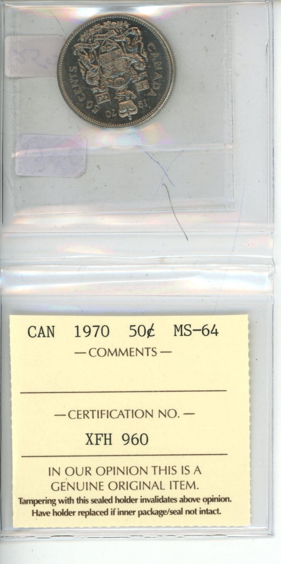 1970 Canadian Fifty Cent - ICCS Graded - MS64