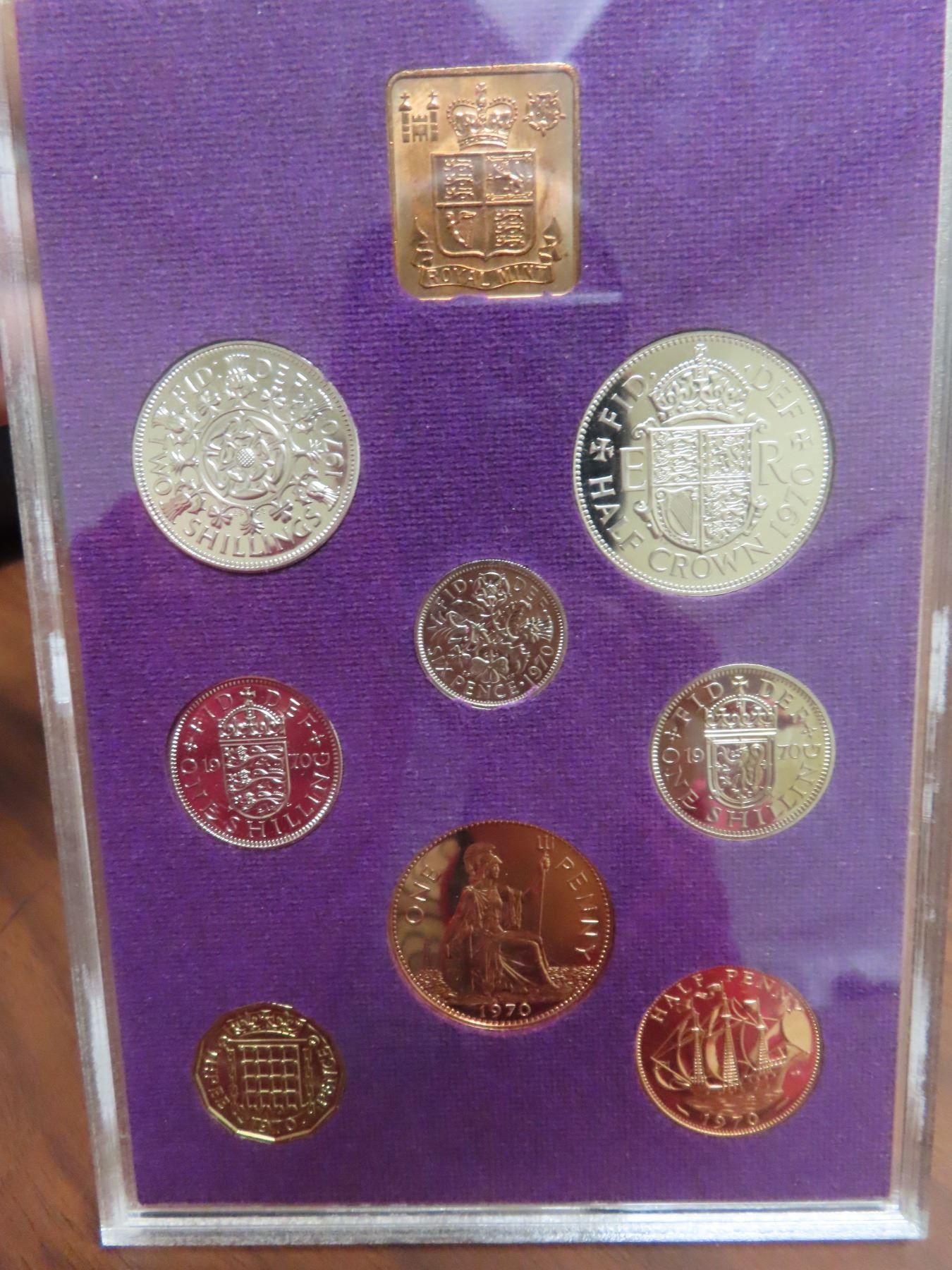 1970 Coinage of Great Britain and Northern Ireland Proof Set. 8-coin Proof Set of the last pre-Decimal coinage of the UK. Includes a Mint Medal. Housed in its original Royal Mint case of issue.