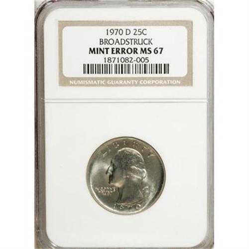 <B>1970-D 25C Washington Quarter--Broadstruck--MS67 NGC.</B></I><BR><BR><B>Coin Engraver:</B> John Flanagan<BR><BR><b>Shipping:</b> Coins & Currency (<a target="_blank" href="http://www.heritageauctions.com/common/shipping.php">view shipping information</a>)