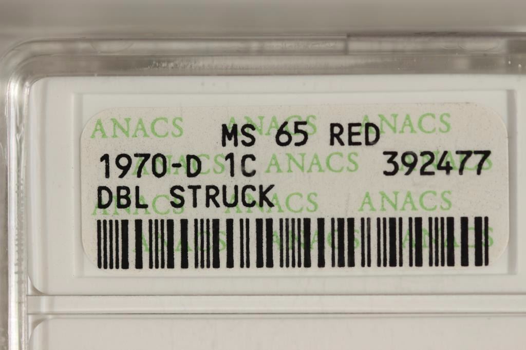 1970-D DOUBLE STRUCK LINCOLN CENT ANACS MS65 RED