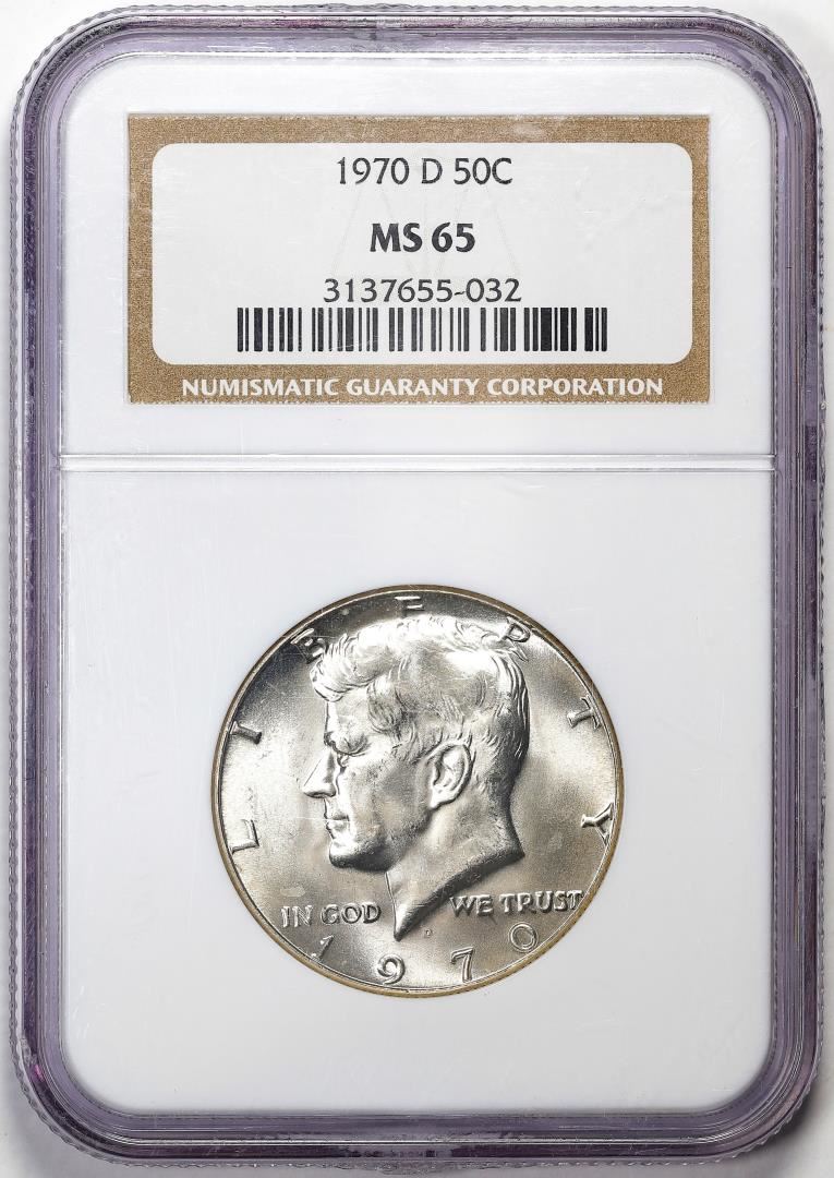 One 1970-D Kennedy Half Dollar Coin NGC MS65. NGC Certified.