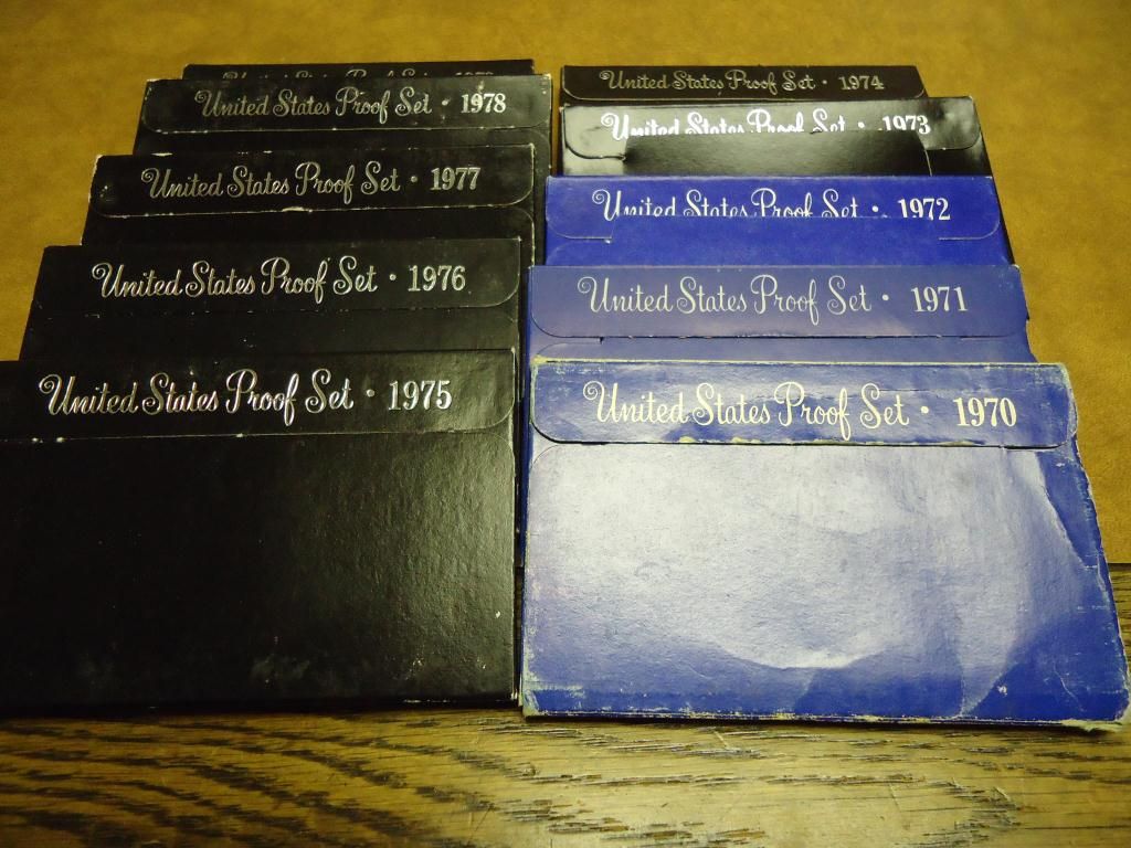 1970 DECADE RUN OF US PROOF SETS 10 SETS