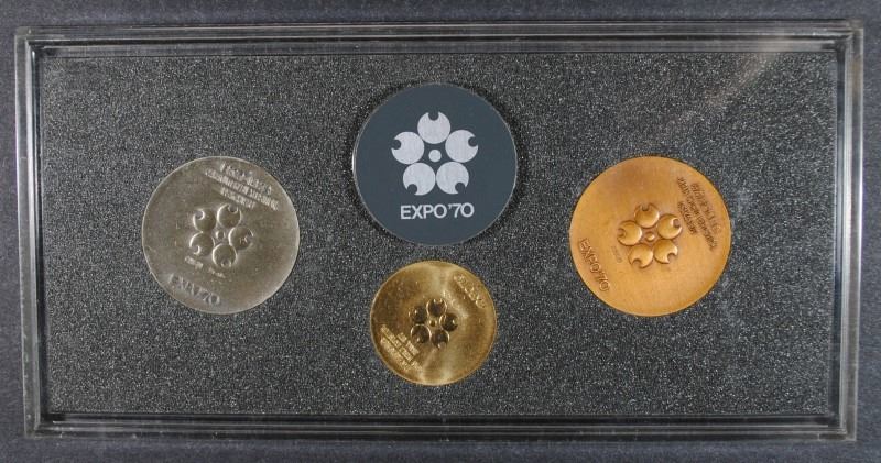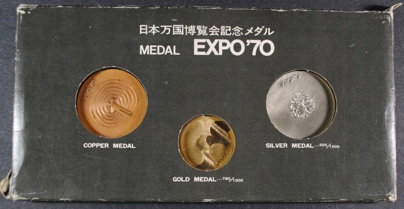 1970 EXPO '70 OSAKA JAPAN GOLD/SILVER COPPER MEDAL SET IN CASE, GOLD IS 18KT AND