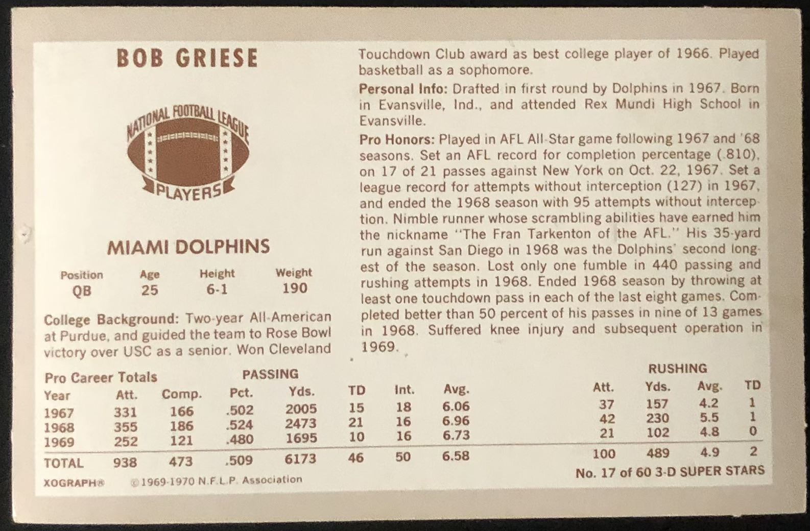Card #17 NFL, football, vintage, hall of fame, regional