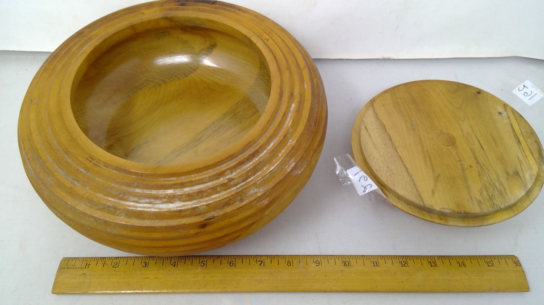 1970 Lidded Container - 11" Diameter - Oregon - Myrtle Wood Top Design - Hand Craftsmanship